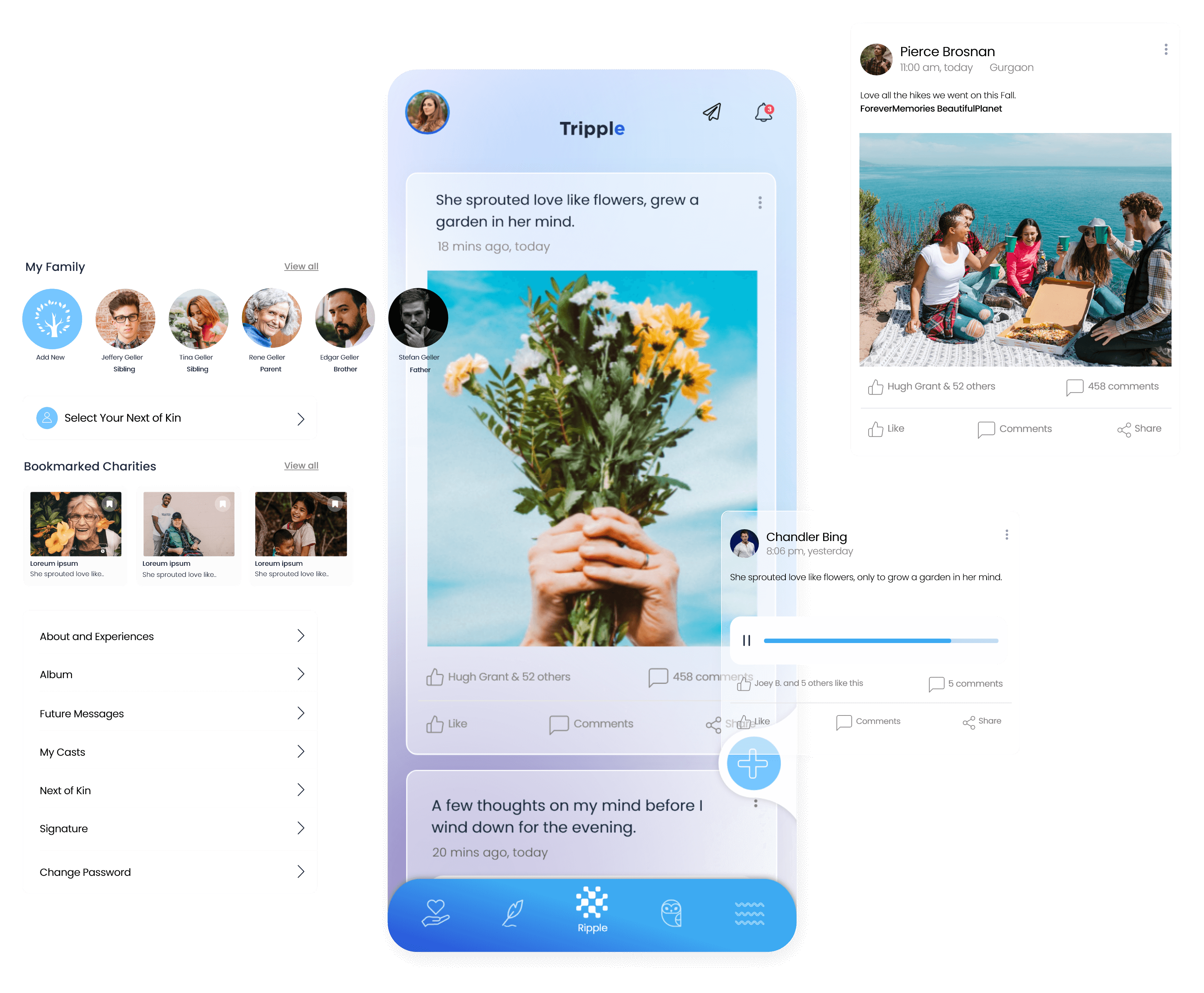 With Tripple, Raptor Mobile Apps designed and deployed a unique Time Ripple feature, wherein the users can share their thoughts, opinions, visuals, videos, and more which can be made sharable even after their death, to a particular audience chosen by them.